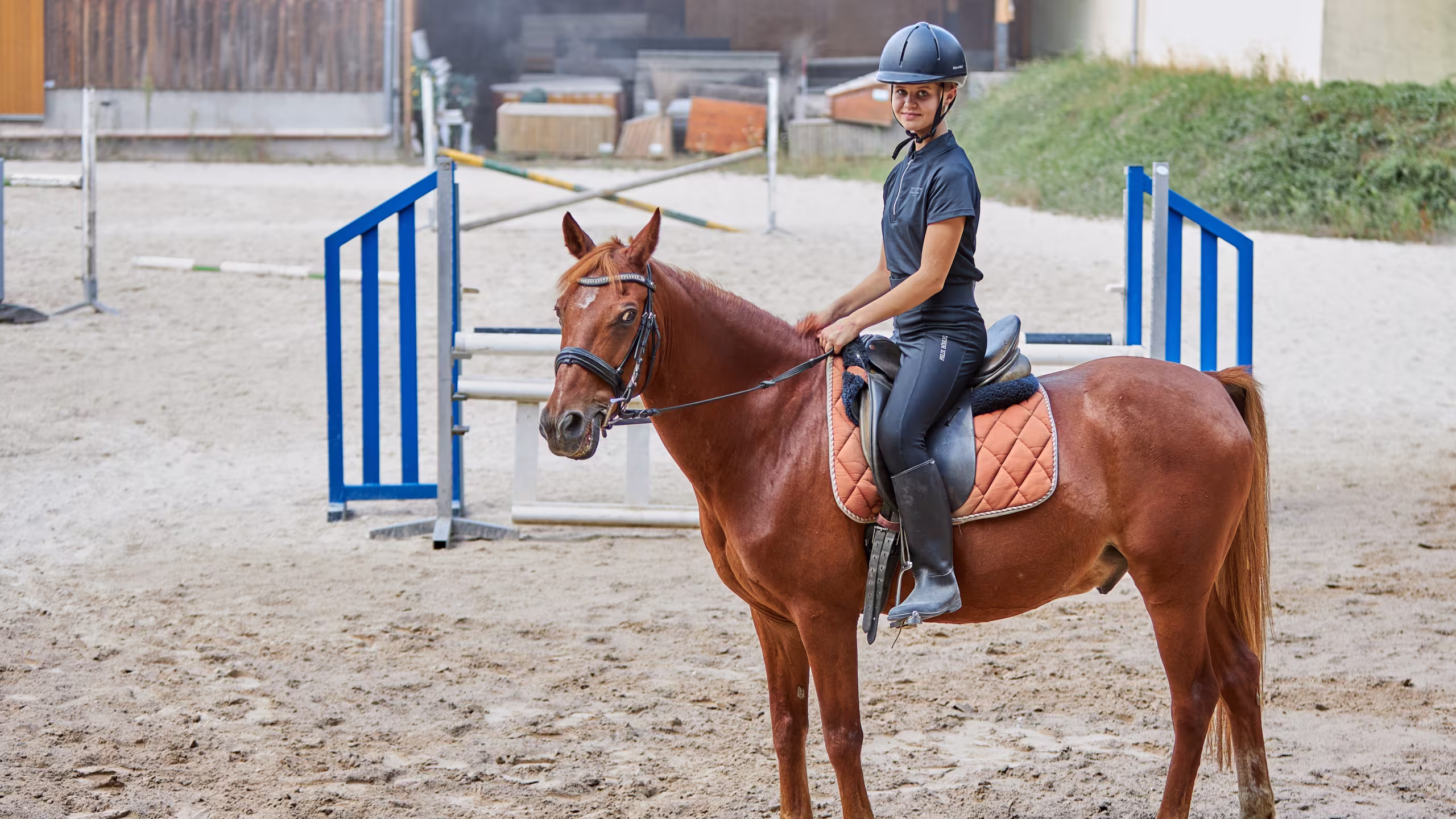 Our experienced riding instructors, Ms. Katrin Steuer and Ms. Beate Schrank, will help you become proficient in English riding style during the Summer School, both in the indoor arena and on the riding field. Weather permitting, you will go out into the terrain. It is important to both women to pass on their experiences and love for horses to you.